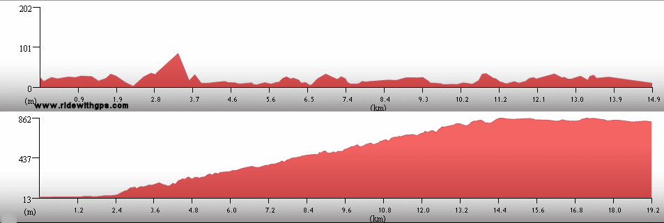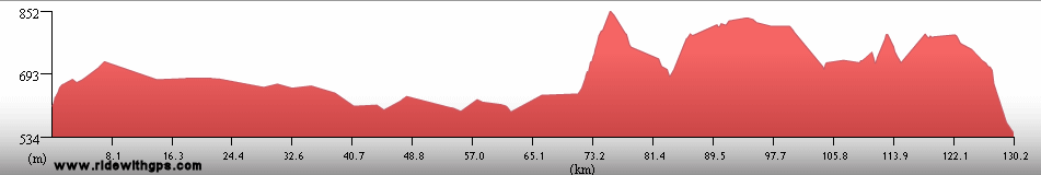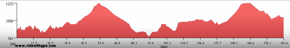 Terrain: Moderate rolling with a couple small climbs; moderate to heavy rolling